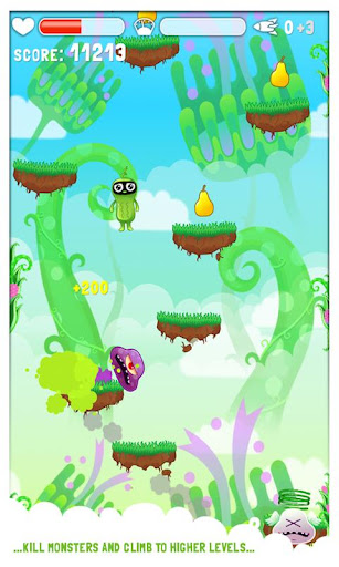 The gamerâs green hero jumps automatically, and its up to you to make sure he lands safely on platforms, picks up all the stray fruits, vegetables, and gold coins he comes across, and avoids fast food disasters on the way up. After all, after one too many greasy burgers our little green guy will get to fat to jump, and its game over for you!